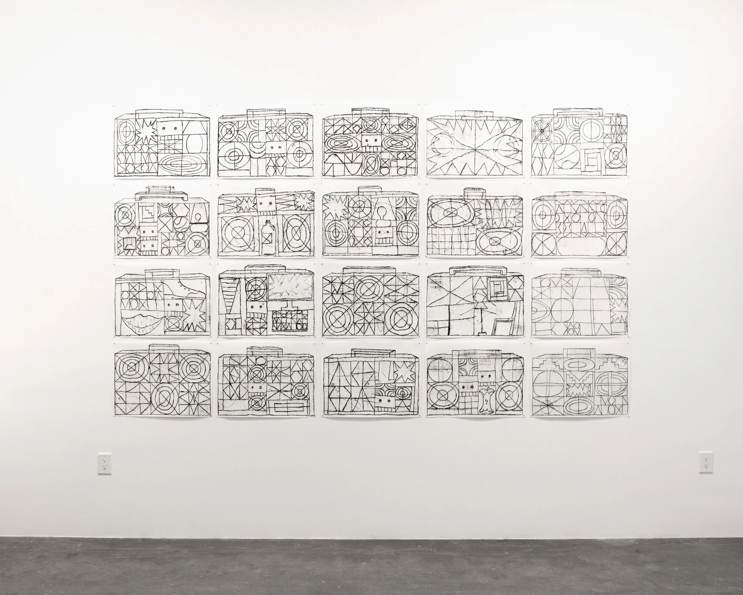 PAUSE II (Reset), 2025, installation: 75 x 124 in / individual drawings: 18 x 24 in